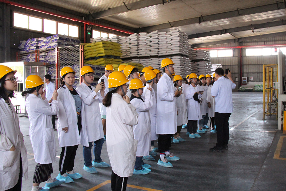 生產(chǎn)部經(jīng)理陳宏亮陪同師生們參觀了公司車間、原料庫房、成品庫房,并詳細介紹了公司的規(guī)模、生產(chǎn)工藝流程及先進設(shè)施設(shè)備等。
