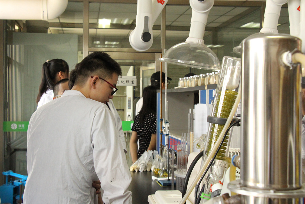 在化驗室,技術(shù)質(zhì)量部主管李增輝將各種飼料分析儀器的用途和各種成品飼料的形態(tài)色澤等物理性狀進行了耐心細致的講解,并對學(xué)生的疑問進行了一一解答。