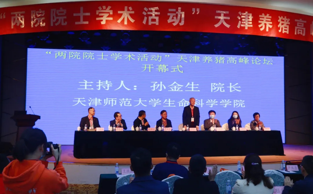 2020年11月8日,“兩院院士學術活動”天津養豬高峰論壇在天津鑫茂天財酒店隆重舉行。中國工程院院士、中國農業大學教授李德發,天津師范大學副校長王群生、天津市科學技術協會副主席盧雙盈,天津市農委的相關領導及全國學術一線知名技術專家等近300位行業大咖參加會議。大會圍繞著“健康養豬,助力產能恢復”展開學術討論。